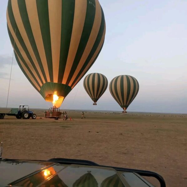 • Unparalleled Wildlife Viewing: From your aerial vantage point, you will immediately spot gazelles and, as the sun rises, identify other animals. The area is home to the ‘Big Five’ (Buffalo, Lion, Cheetah, Elephant, Rhino) and is renowned for the annual “Great Migration.” You can see for miles and miles across the stunning landscape. On average, the balloon flies between 8–12 kilometres during the flight.
